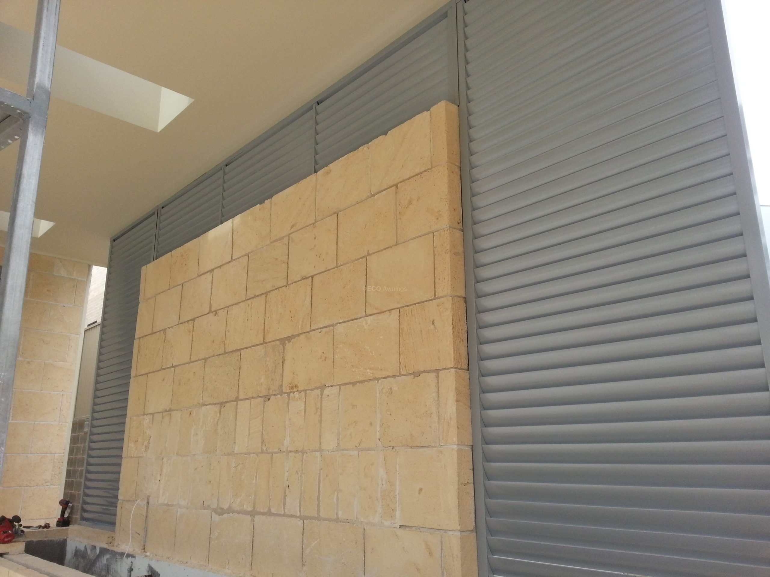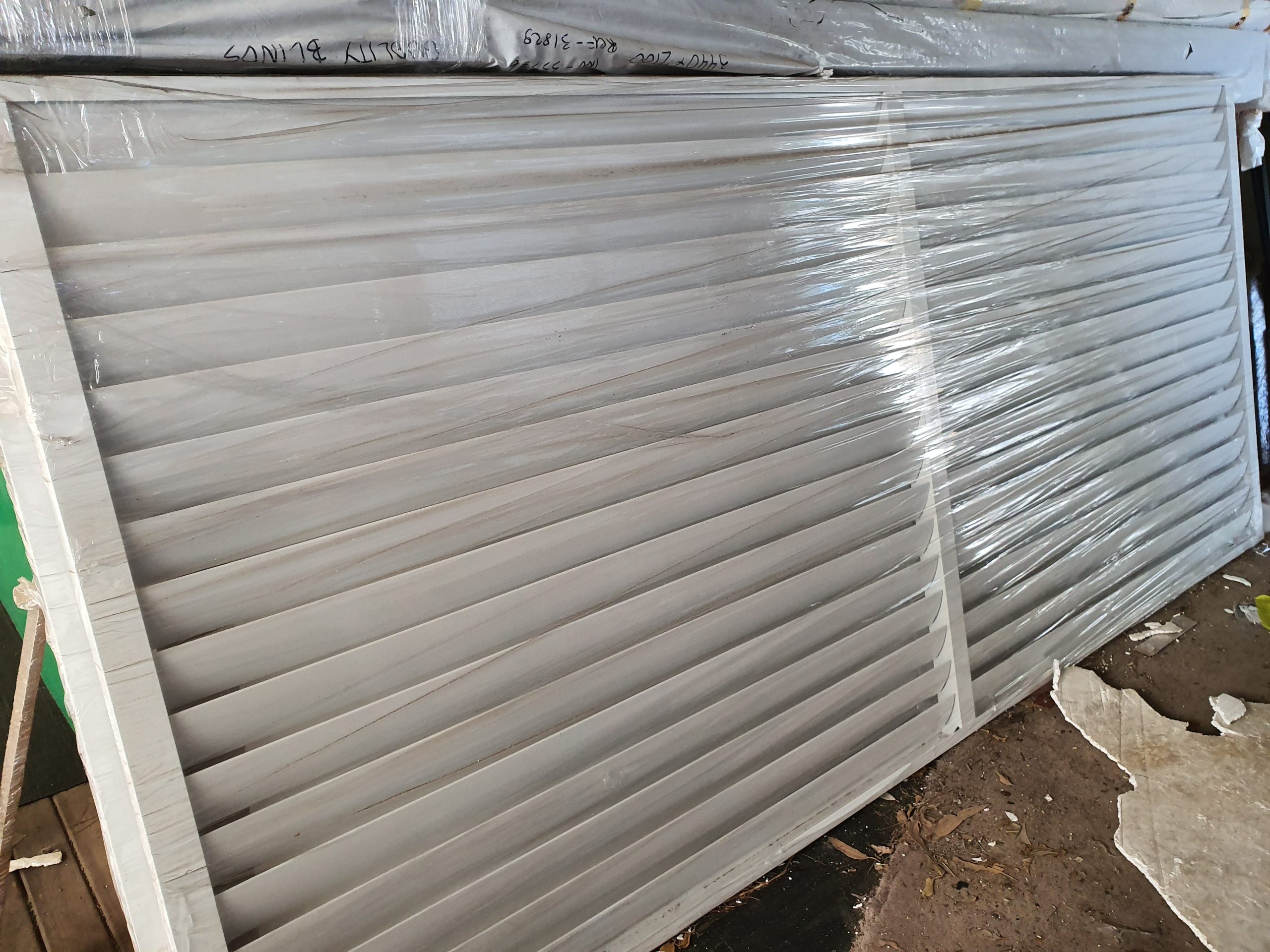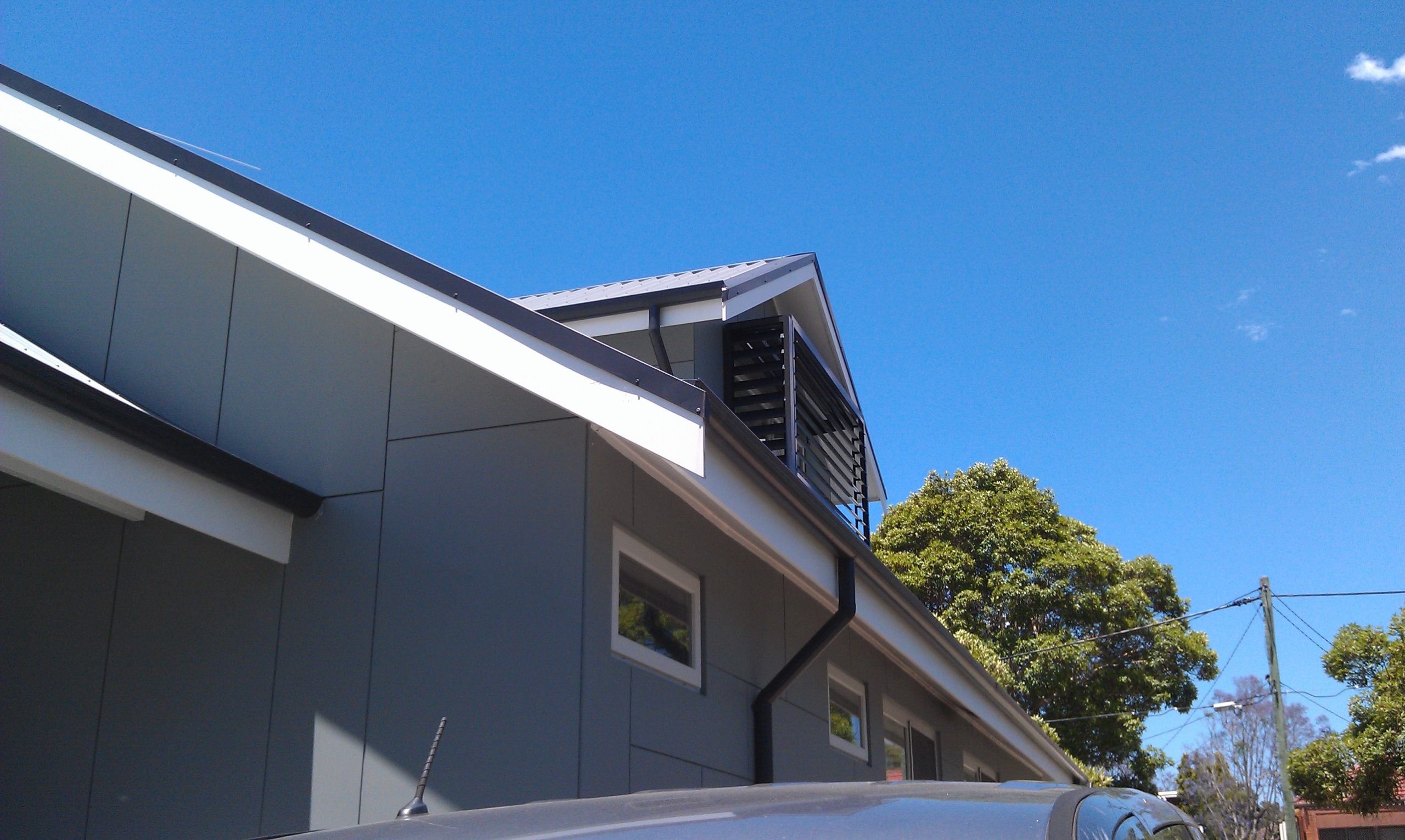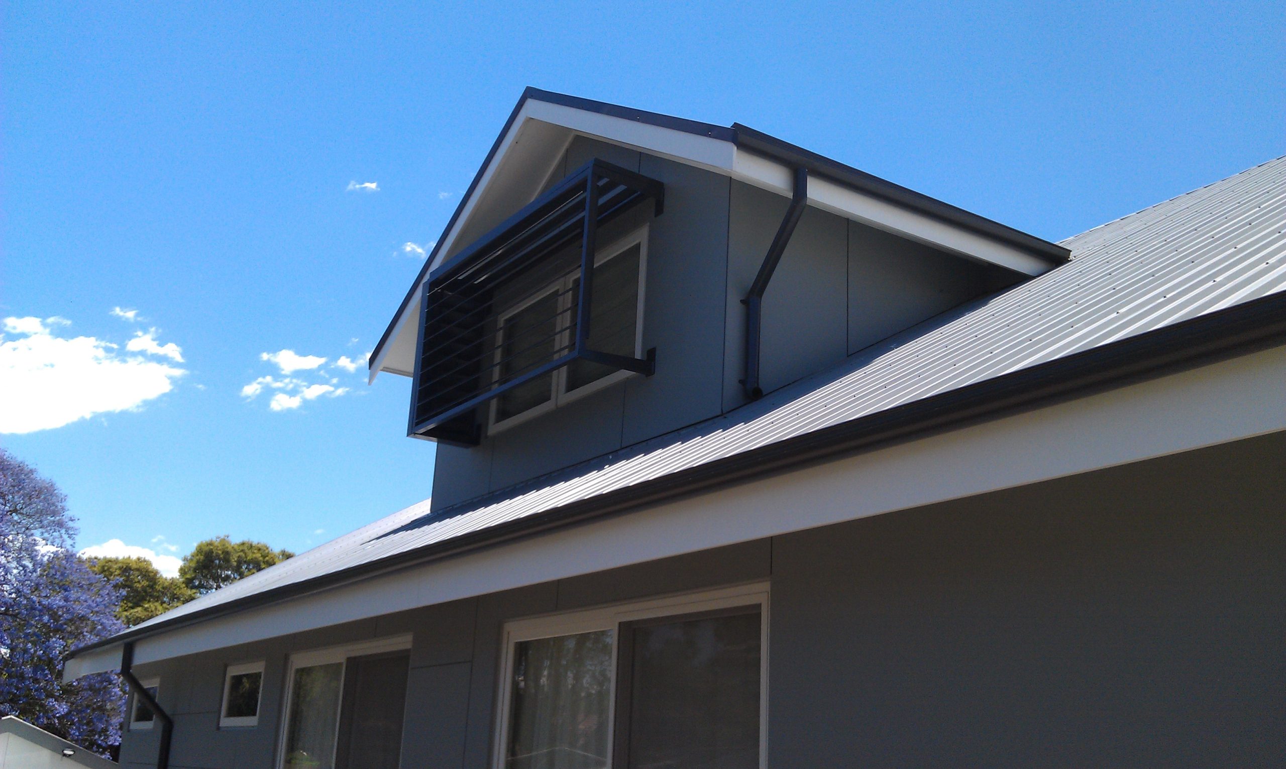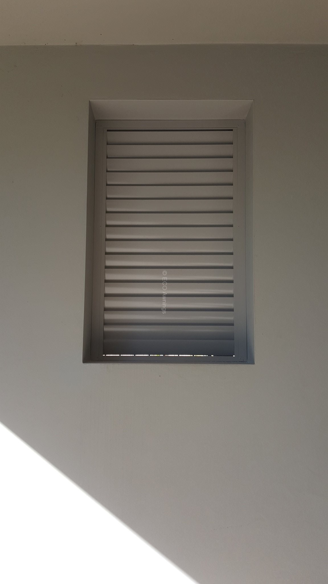 Aluminium cantilever louvres over sliding doors and windows, white powder coat, no front posts, Sydney home