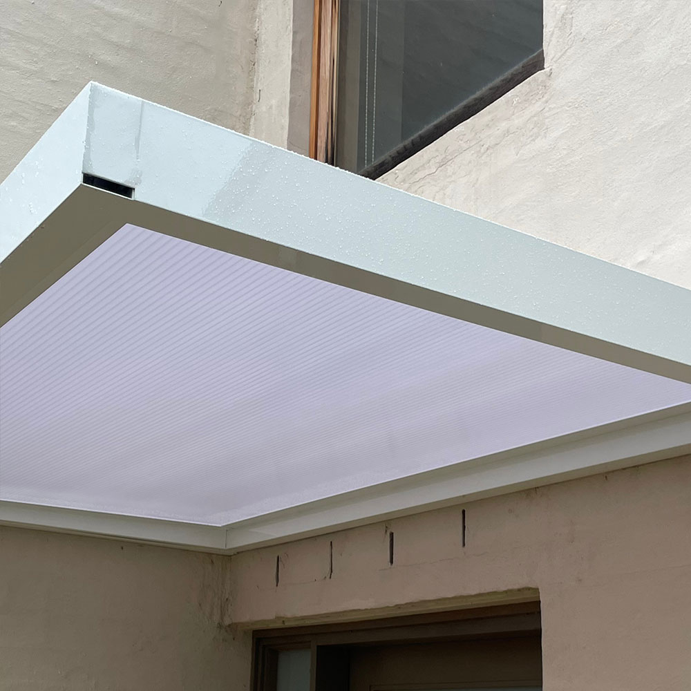 Because the surface diffuses light rather than allowing full transparency, dust, water marks, leaves, and general dirt are far less noticeable compared to clear polycarbonate. This means the awning maintains a cleaner, more uniform appearance for longer, with less frequent cleaning required.